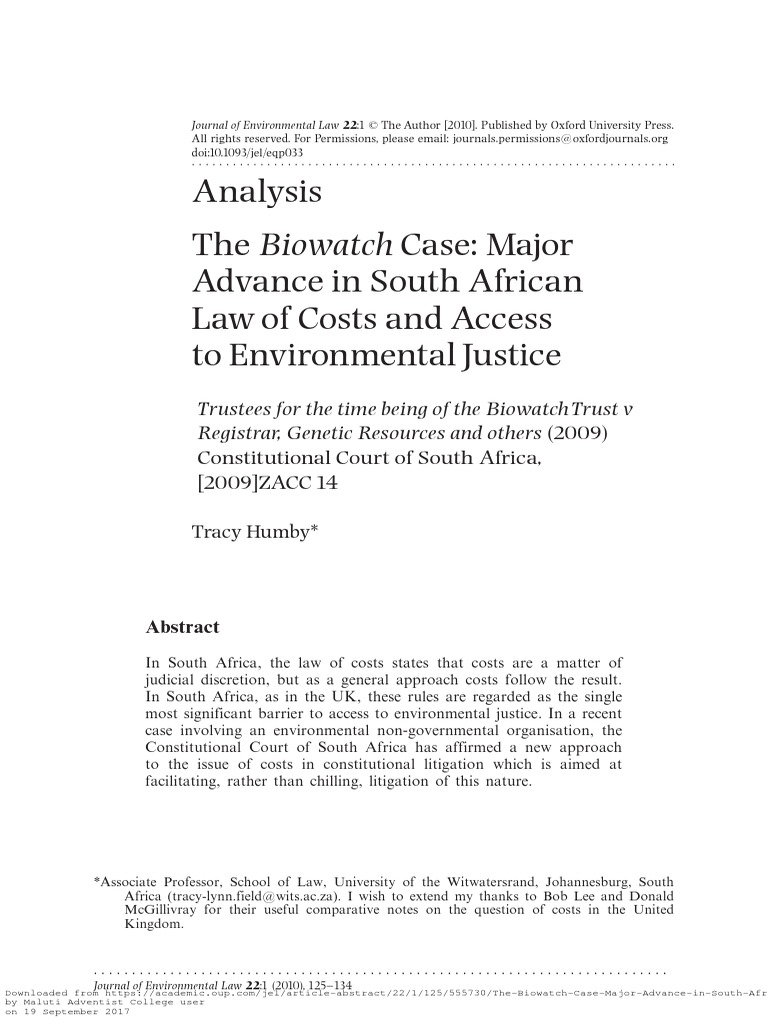 3 The case is cited as Trustees, Biowatch Trust v Registrar: Genetic Resources & Others 2005 (4) SA