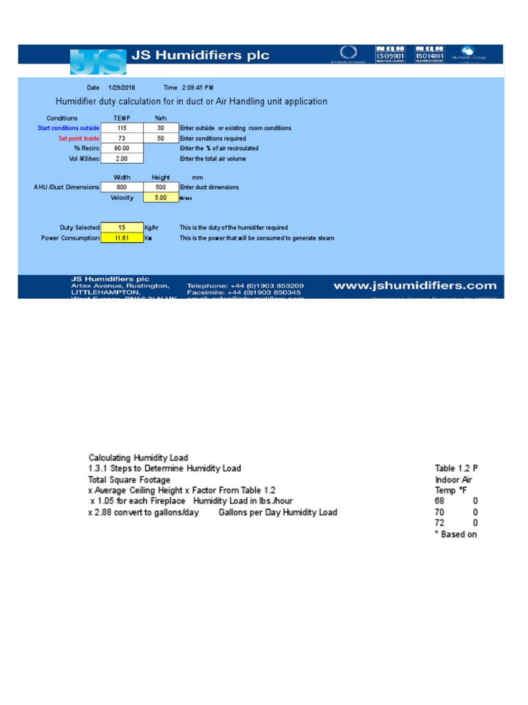 Duty Selected 15 Kg/hr This is the duty of the humidifier required