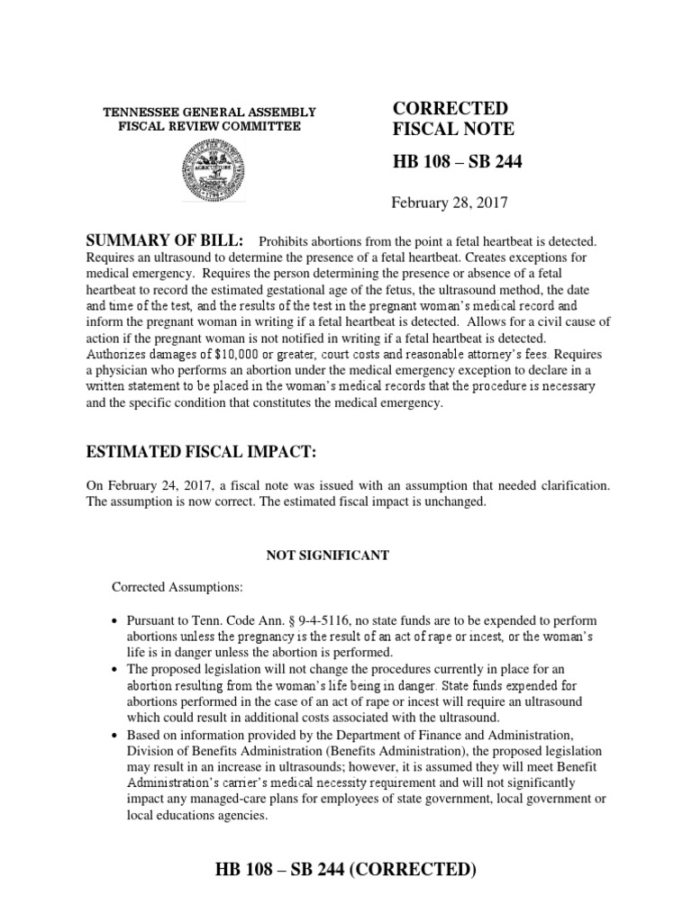 covers medically necessary abortions; therefore, any fiscal impact is estimated to be not