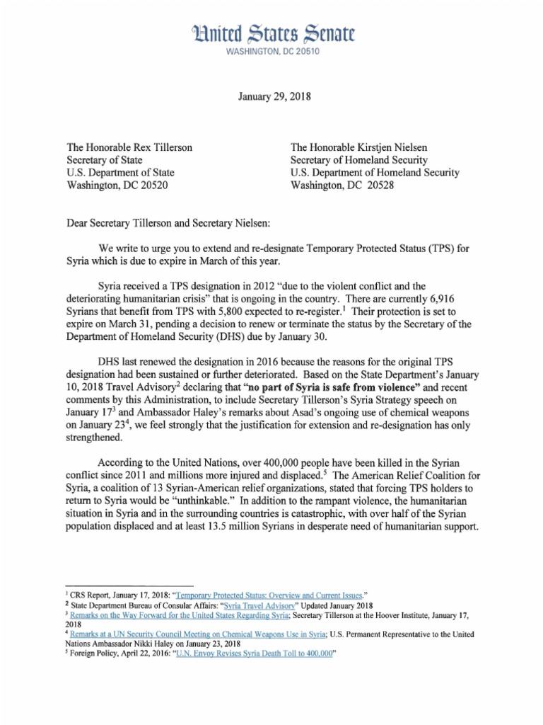 Kaine, Cardin Lead Letter Urging Trump Administration to Extend TPS Status for Syria
