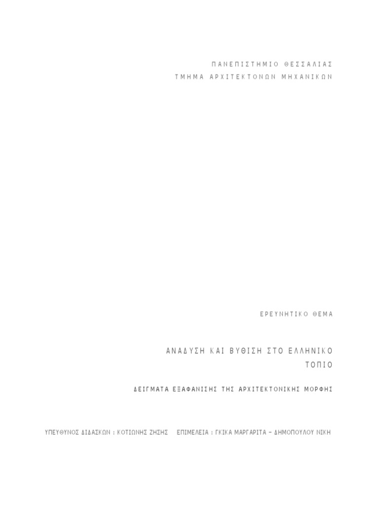 αρχιτεκτονικής που προσπαθεί να συναντήσει την αυθόρµητη κατοίκηση στο ύπαιθρο αναδεικνύοντας το ελληνικό