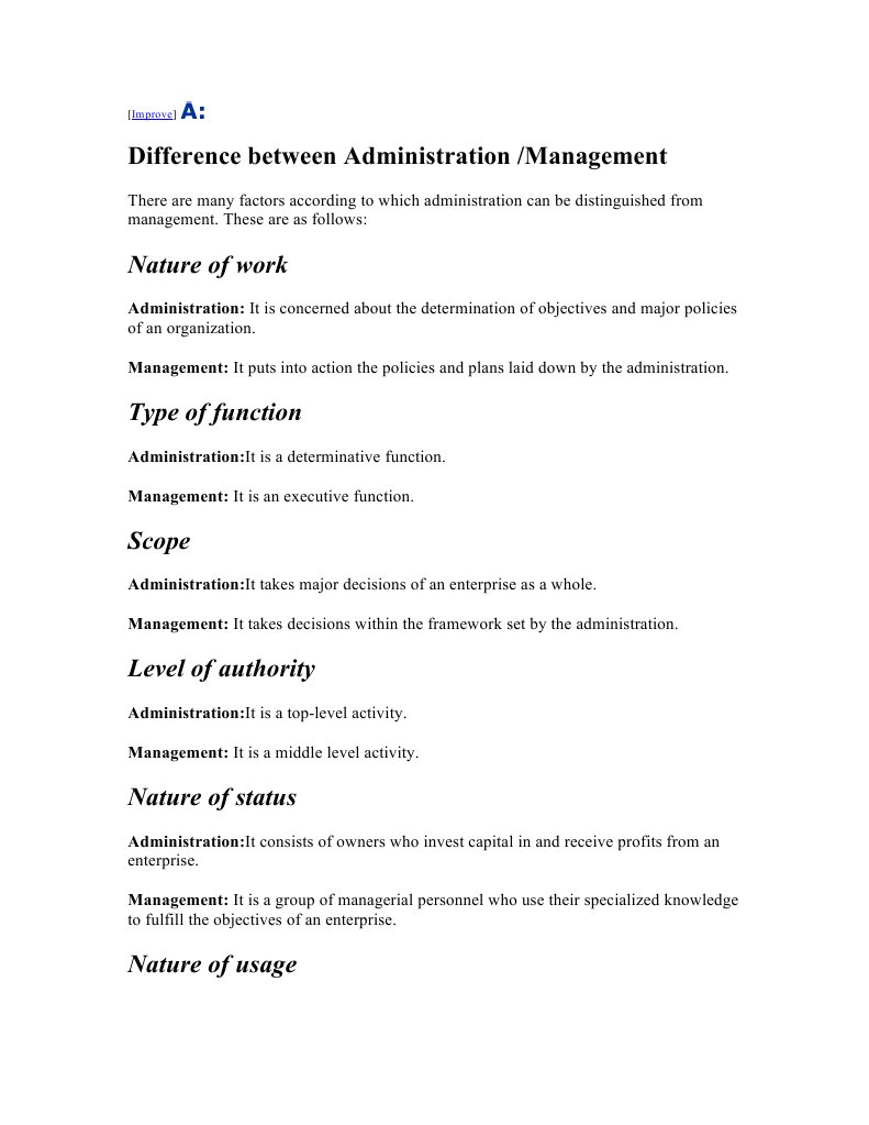 Difference between Administration /Management