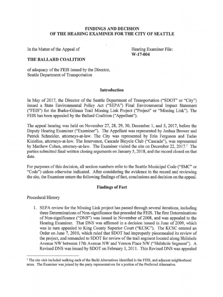 Missing Link ). The FEIS has been appealed by the Ballard Coalition ( Appellant ).