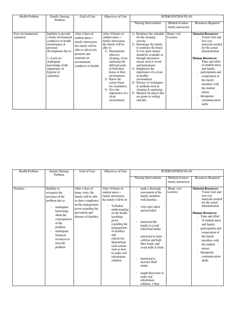 Health Problem Family Nursing Goal of Care Objectives of Care INTERVENTION PLAN
