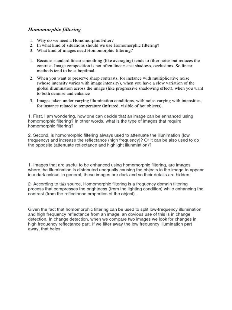 2. Second, is homomorphic filtering always used to attenuate the illunimation (low