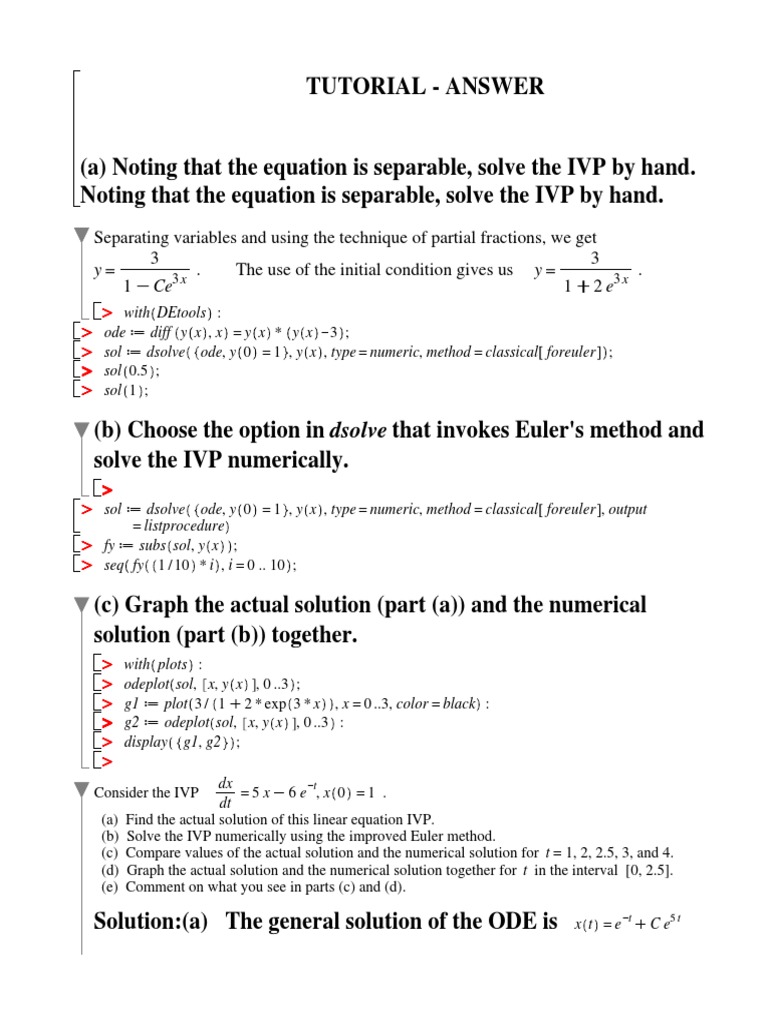 (b) Choose the option in dsolve that invokes Euler's method and