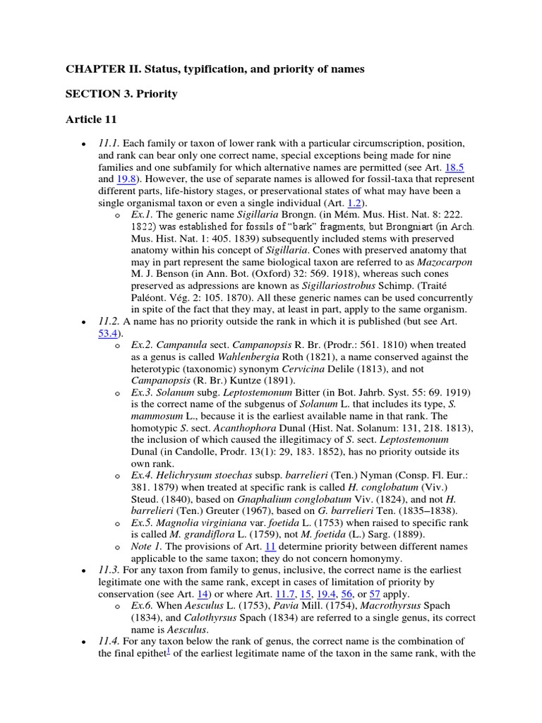 11.1. Each family or taxon of lower rank with a particular circumscription, position,