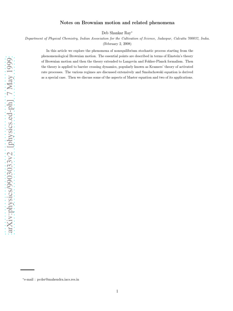 [1] Einstein A 1956 Investigations on the theory of Brownian movement edited by R. Fürth (Dover, NewYork) [ Papers I and