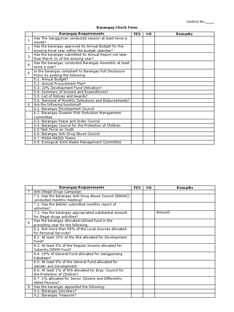 8.6. At least 1% of IRA allocated for Brgy. Council for