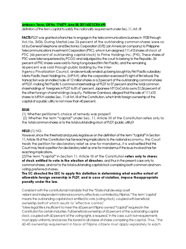 Section 11, Article XII of the Constitution in accordance with Gamboa.