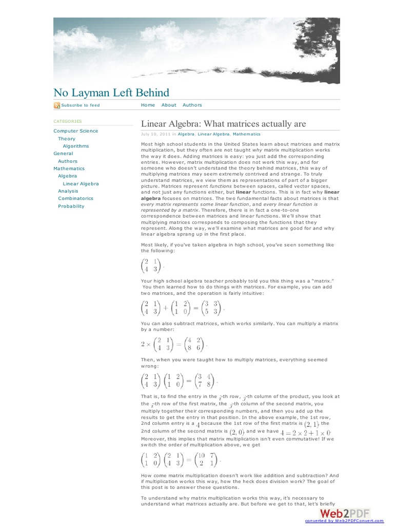 Algorithms Most high school students in the United States learn about matrices and matrix
