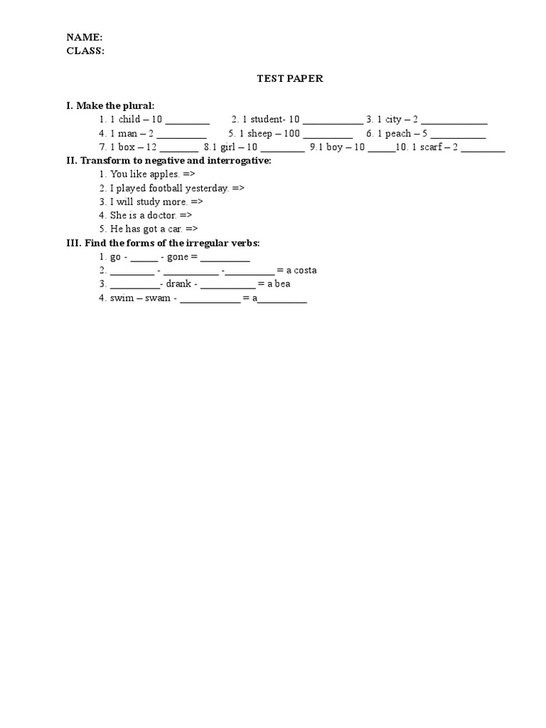 II. Transform to negative and interrogative: