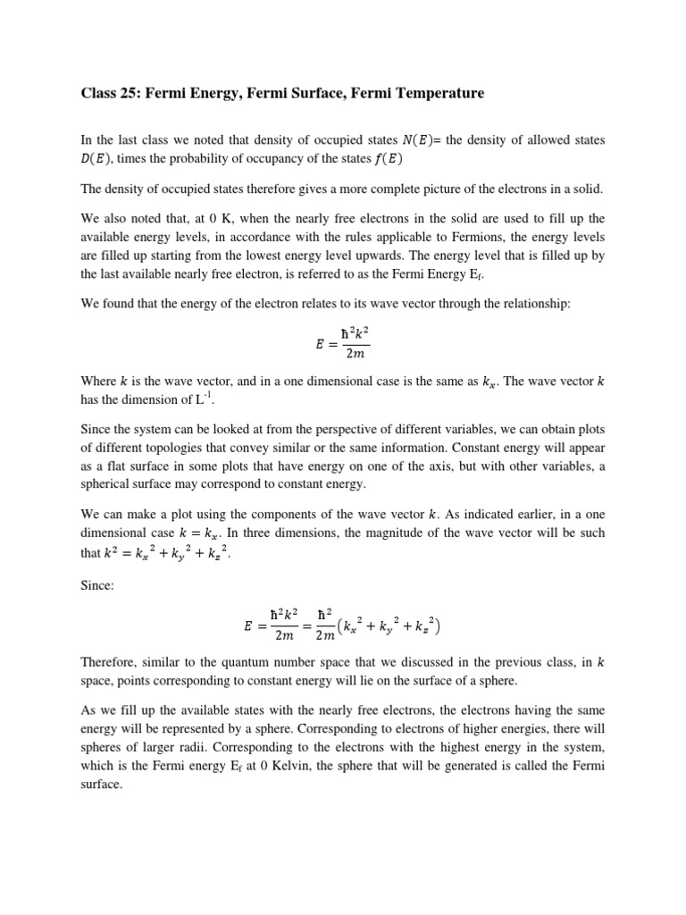 Class 25: Fermi Energy, Fermi Surface, Fermi Temperature