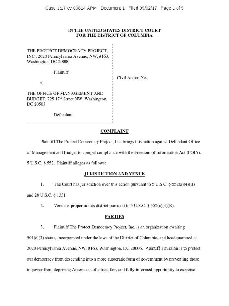 Plaintiff The Protect Democracy Project, Inc. brings this action against Defendant Office