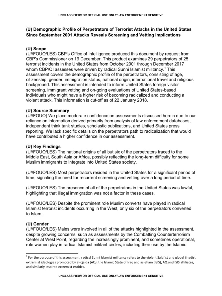 (U//FOUO/LES) The presence of all of the perpetrators in the United States was lawful,