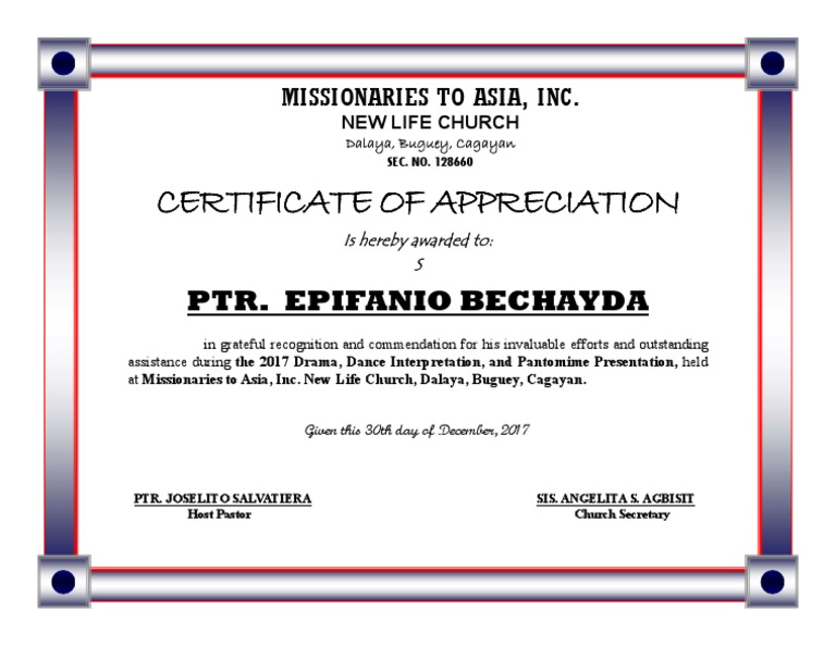 at Missionaries to Asia, Inc. New Life Church, Dalaya, Buguey, Cagayan.