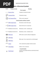 Table of Electrical Symbols