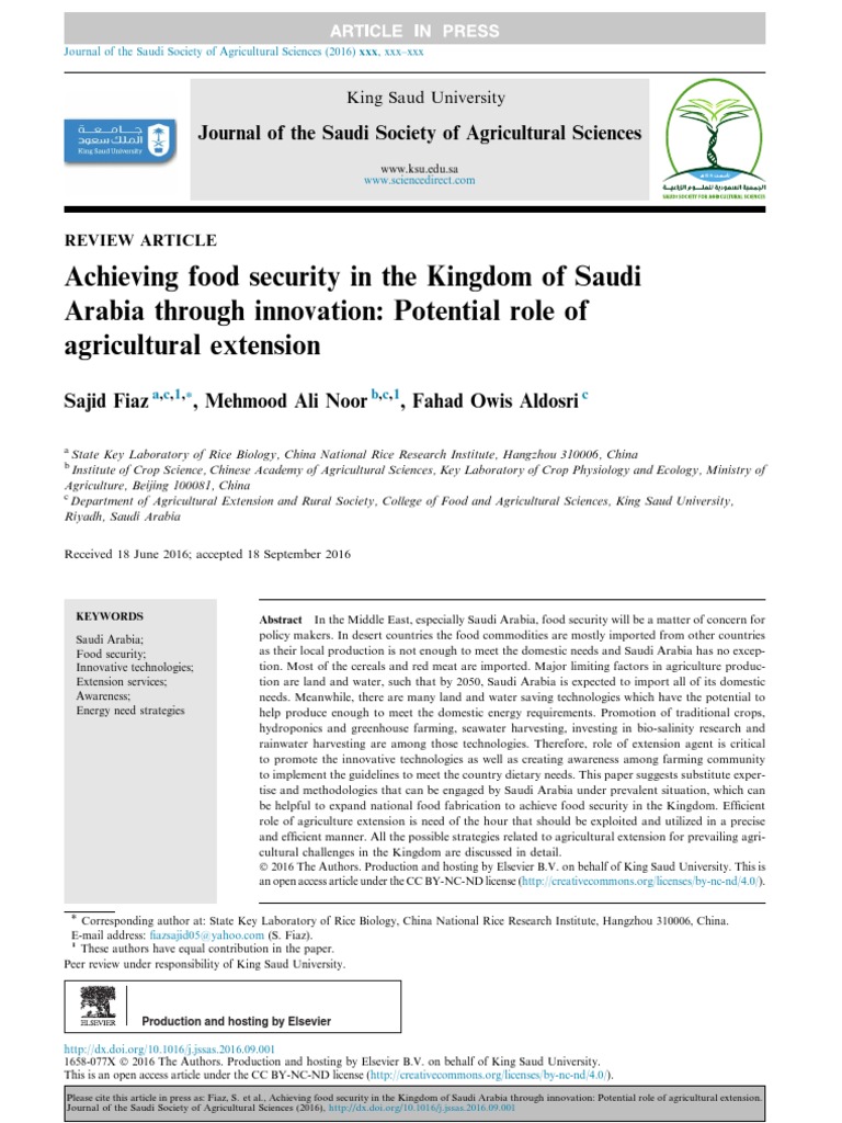 Please cite this article in press as: Fiaz, S. et al., Achieving food security in the Kingdom of Saudi Arabia through innovation: Potential role of agricultural extension.