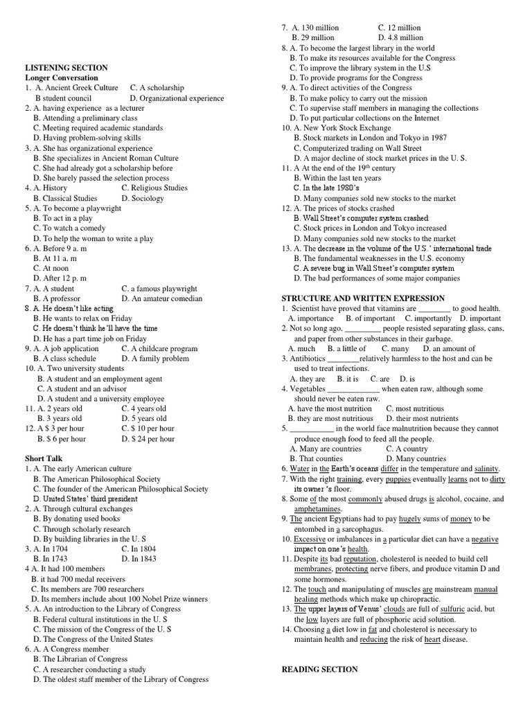 5. A. An introduction to the Library of Congress 13. The upper layers of Venus’ clouds are full of sulfuric acid, but