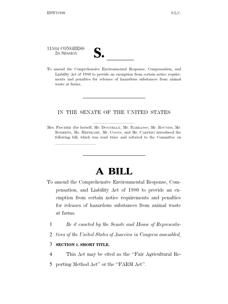 To amend the Comprehensive Environmental Response, Com-pensation, and Liability Act of 1980 to provide an ex-emption from certain notice requirements and penalties for releases of hazardous substances from animal waste at farms.