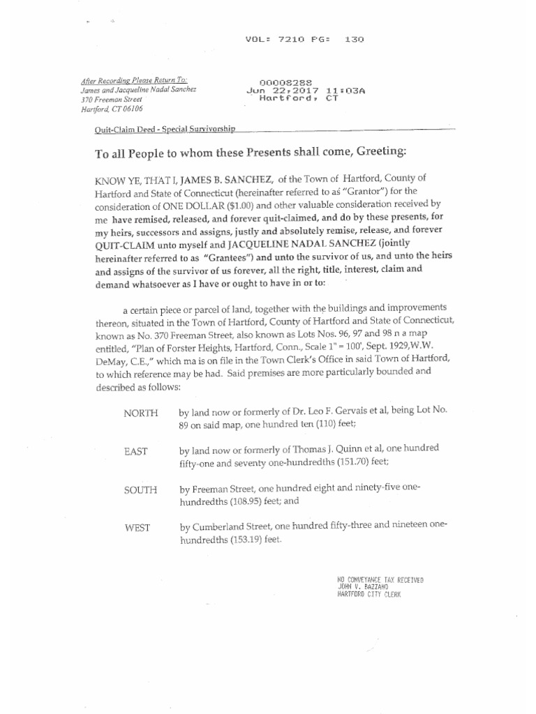 NADAL SANCHEZ QUIT CLAIM RECORDING, "RETURN TO 370 FREEMAN ST"