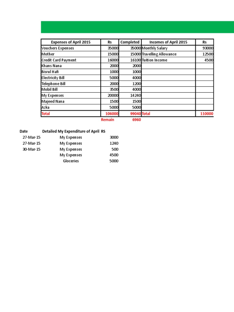 Date Detailed My Expenditure of April RS