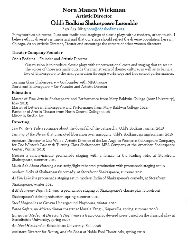 Founding Artistic Director of Odd’s Bodkins, 2015