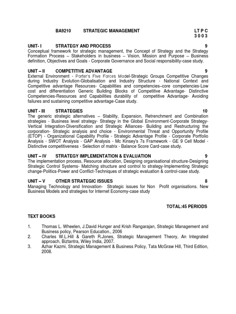 BA9210 STRATEGIC MANAGEMENT LT P C
