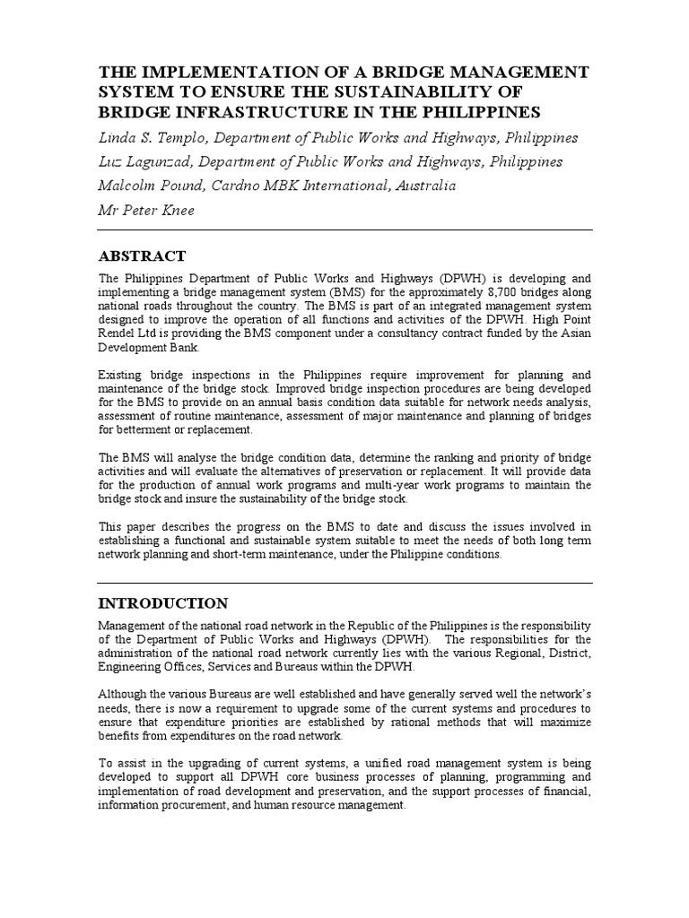 BMS provides a systematic structure in the process of managing bridges. They allow a highway