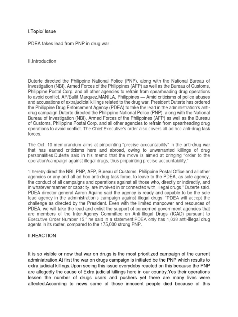 of the republic of the Philippines. Currently while the PDEA takes place the operations it runs