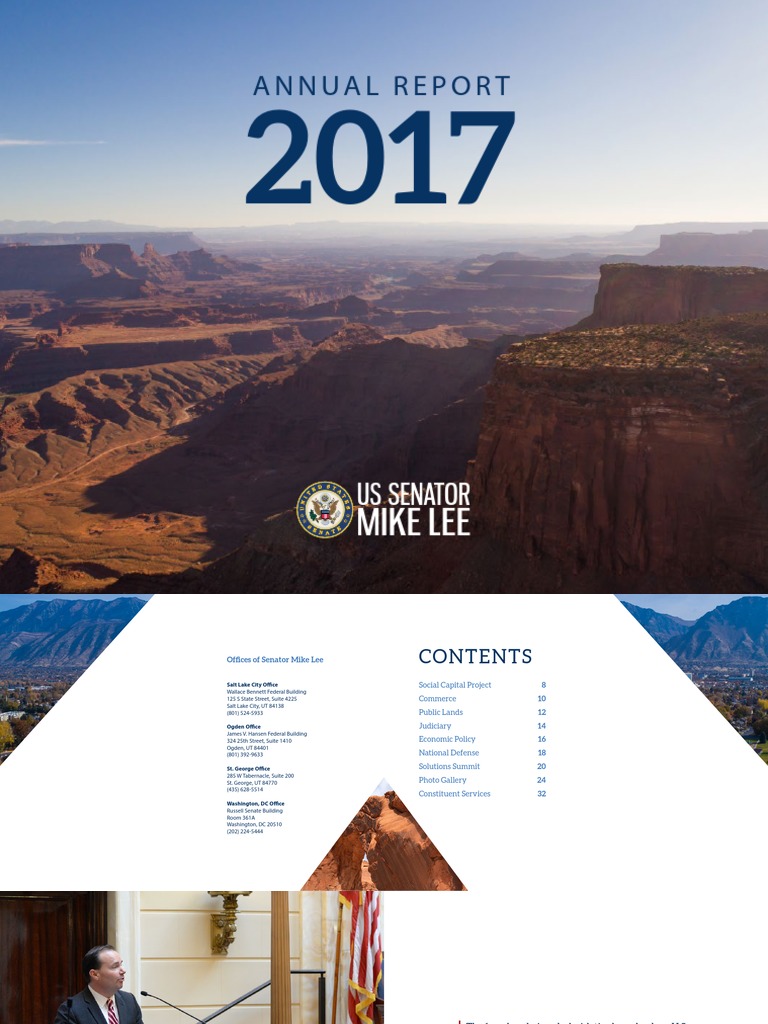 The founders designed a legislative branch where U.S. Senators would be accountable to the states. Each year during Utah’s legislative session, I deliver my annual report to the Utah Legislature and people of Utah. I take this responsibility seriously. This annual report is intended to keep the Utah Legislature and the people of Utah abreast of what I am doing as I strive to represent the values for which we stand in this great state.
