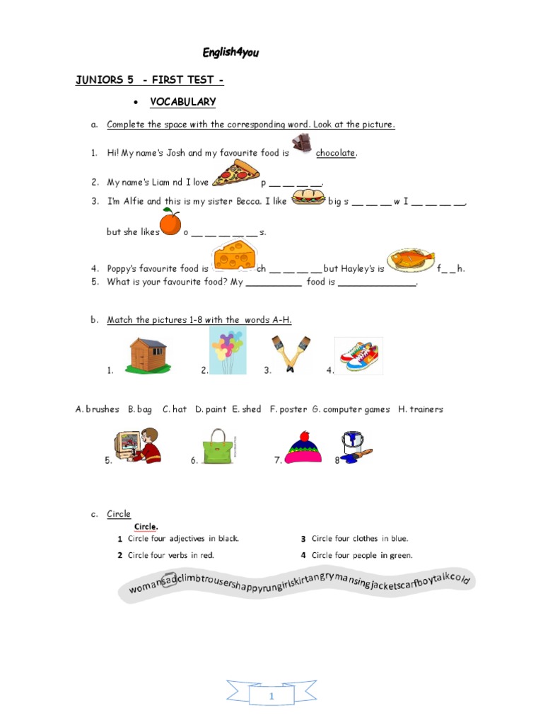 1. Hi! My name’s Josh and my favourite food is chocolate.