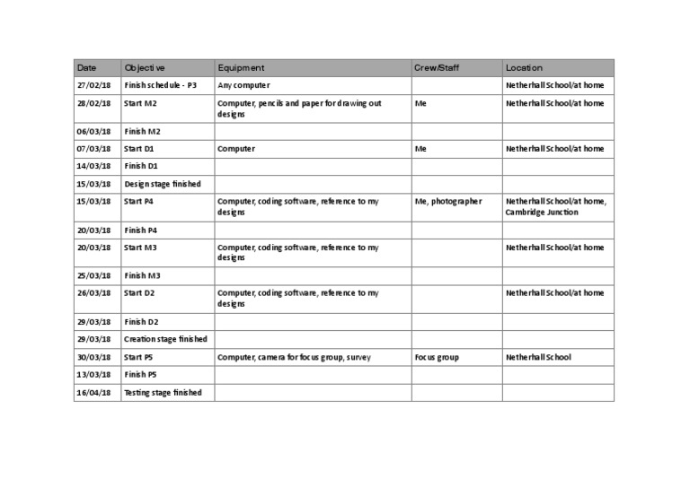 27/02/18 Finish schedule - P3 Any computer Netherhall School/at home