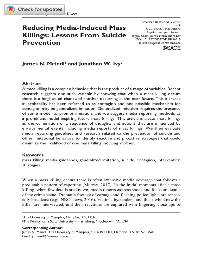Meindl, J., & Ivy, J. W. (2017). Mass shootings: The role of the media in promoting gen-