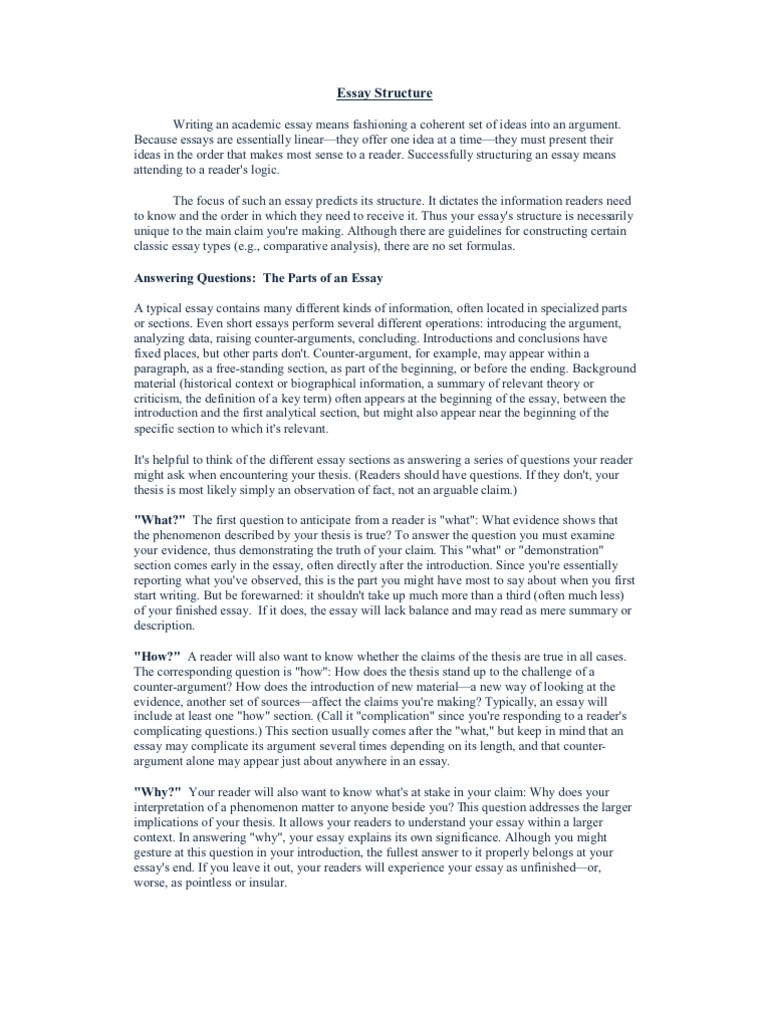 to know and the order in which they need to receive it. Thus your essay's structure is necessarily