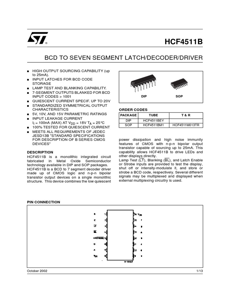 HCF4511B is a BCD to 7 segment decoder driver shut off or intensity-modulate it, and store or