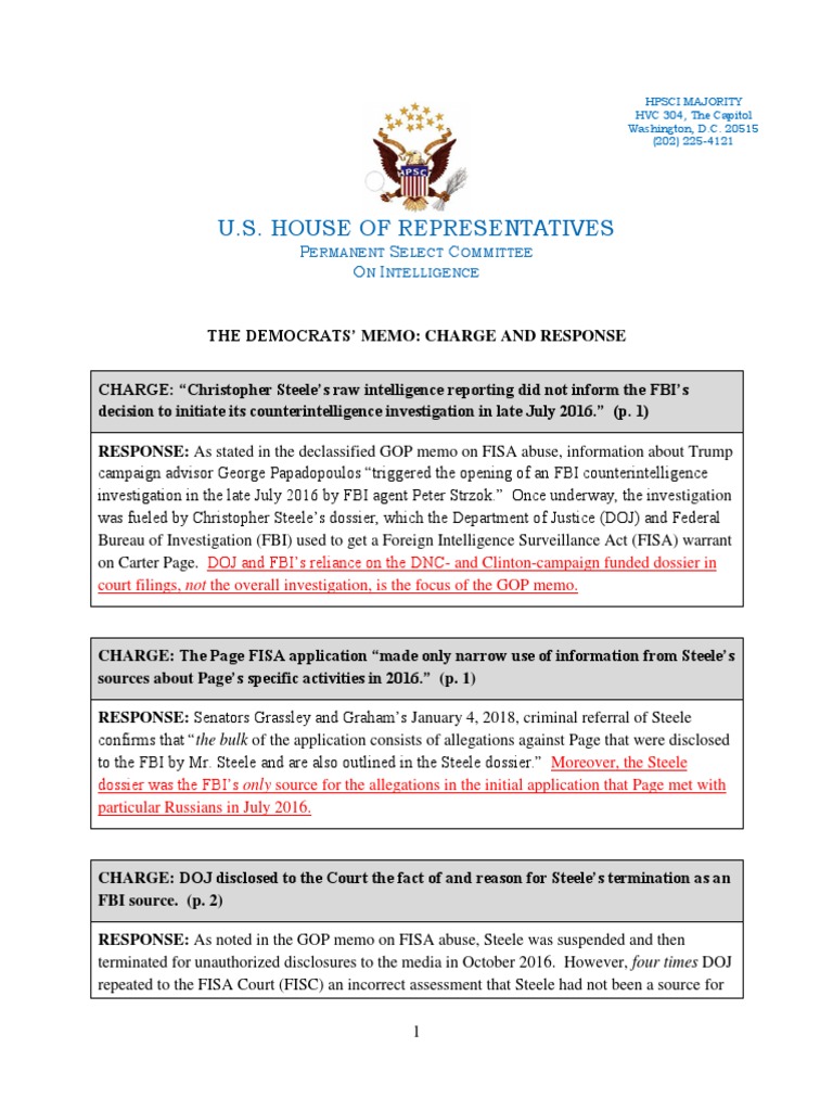 Schiff Minority Memo and Nunes Majority Response