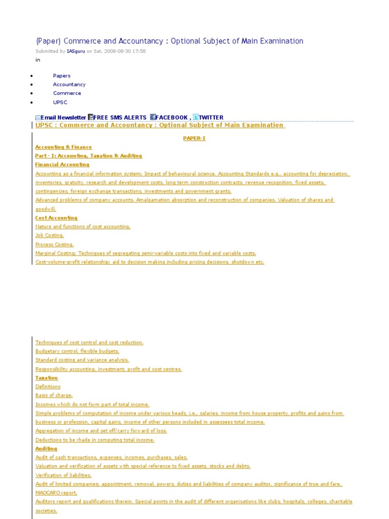 UPSC : Commerce and Accountancy : Optional Subject of Main Examination