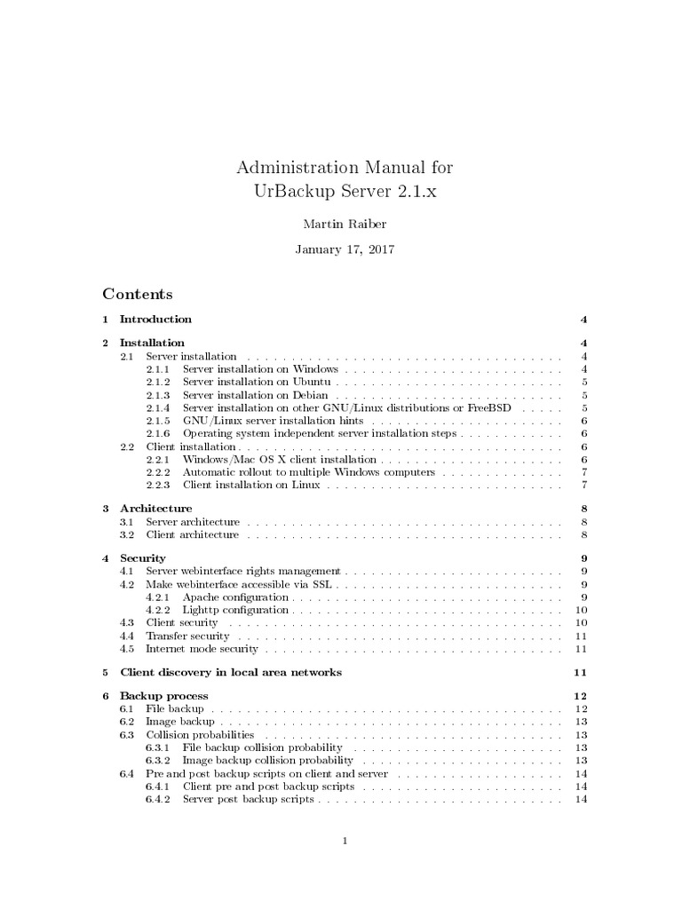 8.1.12 Automatically backup UrBackup database . . . . . . . . . . . . . . . . . . . 17