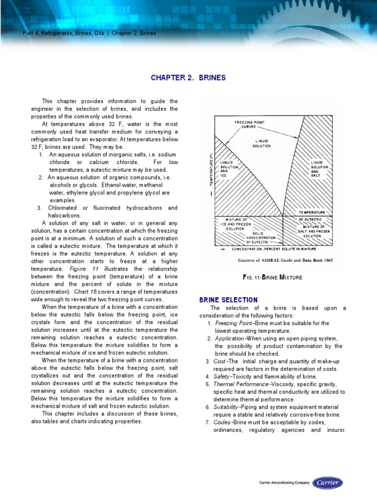 also tables and charts indicating properties. 7. Codes -Brine must be acceptable by codes,