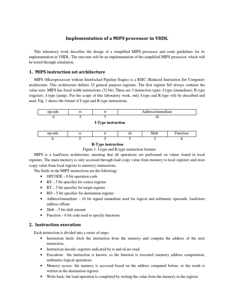 This laboratory work describes the design of a simplified MIPS processor and some guidelines for its