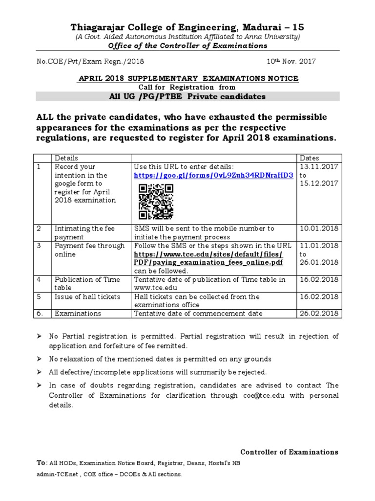 [Link]/Pvt/Exam Regn./2018 10th Nov. 2017