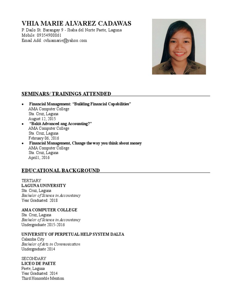Discipline awardee, Gerry Roxas awardee, member of Parish Youth Commission of Saint James the Apostle