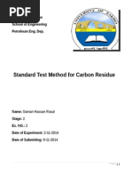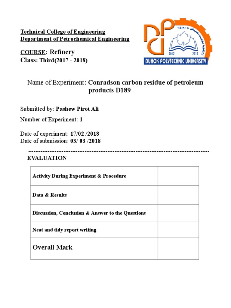 Name of Experiment: Conradson carbon residue of petroleum