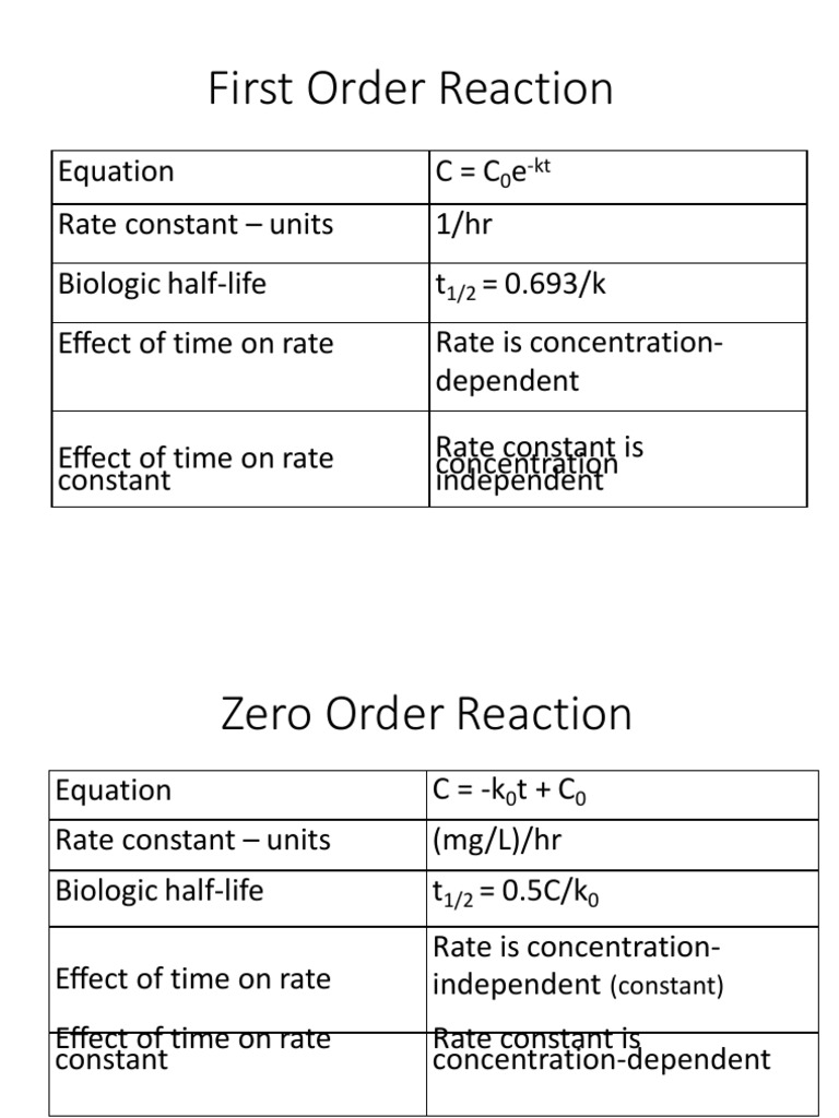 Half-life t ½ = 0.5C/k0 t ½ = 0.693/k