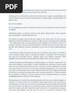 Fellow graduates, let us all thank our beloved parents who work hard to earn a living