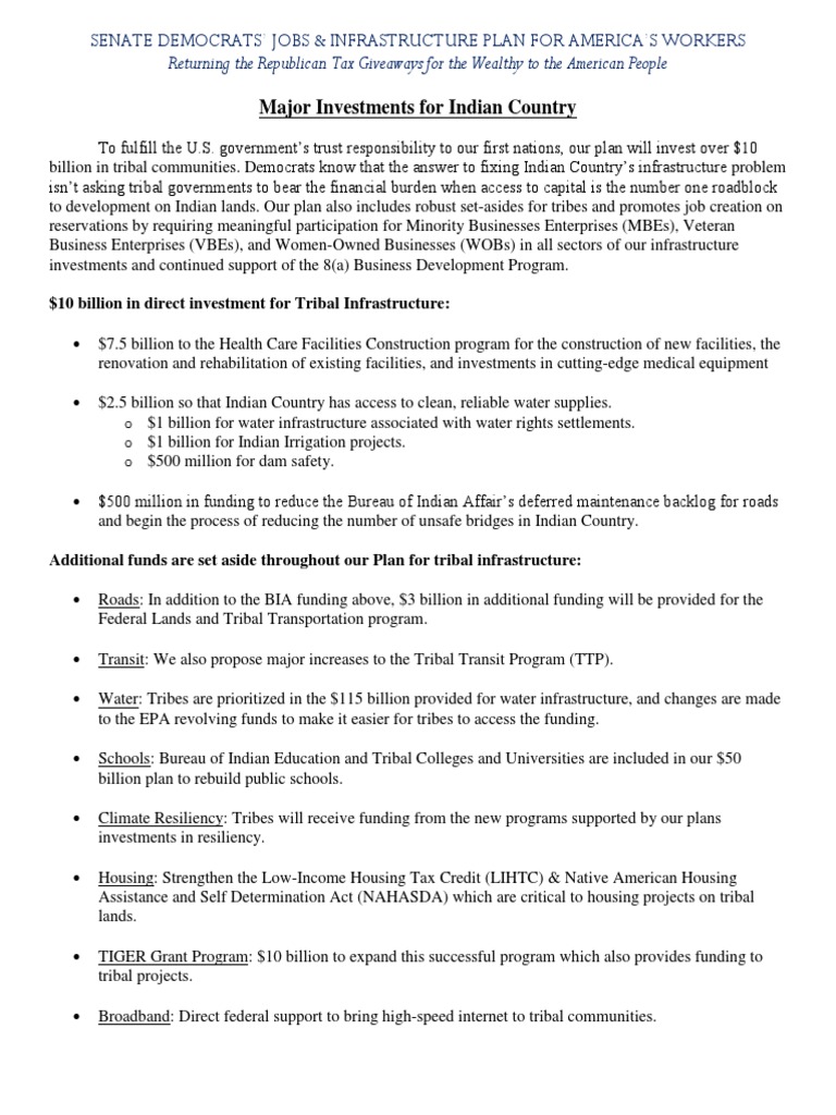 Senate Democrat's Jobs and Infrastructure Plan Tribal Lands Fact Sheet