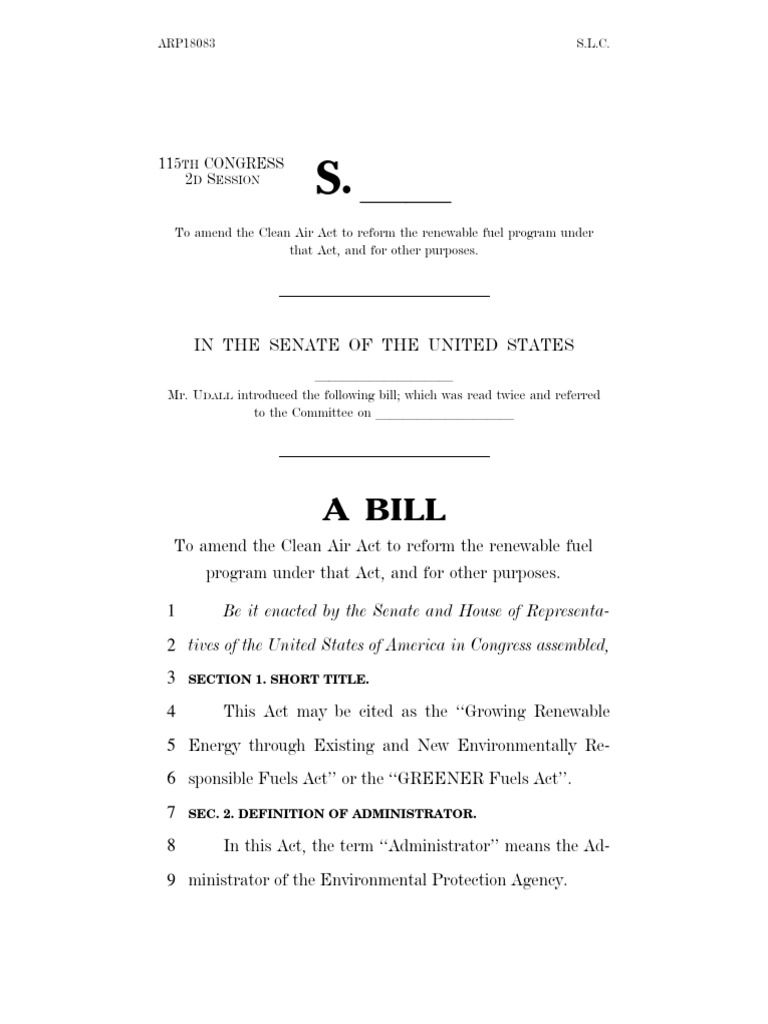 sponsible Fuels Act’’ or the ‘‘GREENER Fuels Act’’.