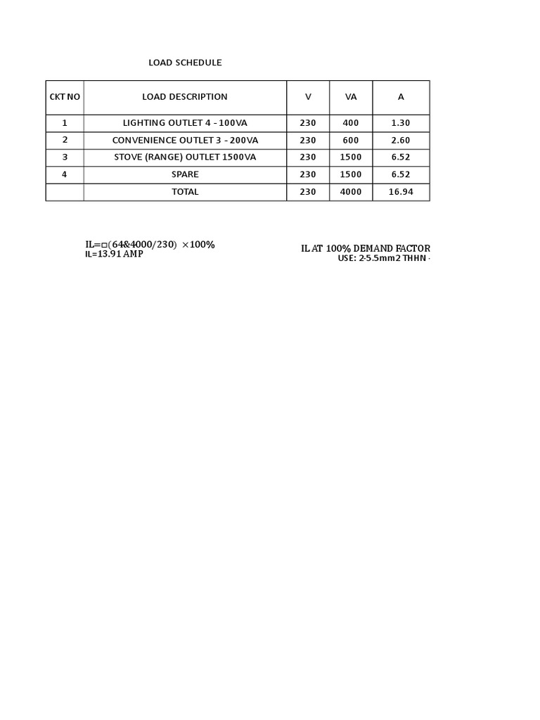 IL=□(64&4000/230) ×100% IL AT 100% DEMAND FACTOR: