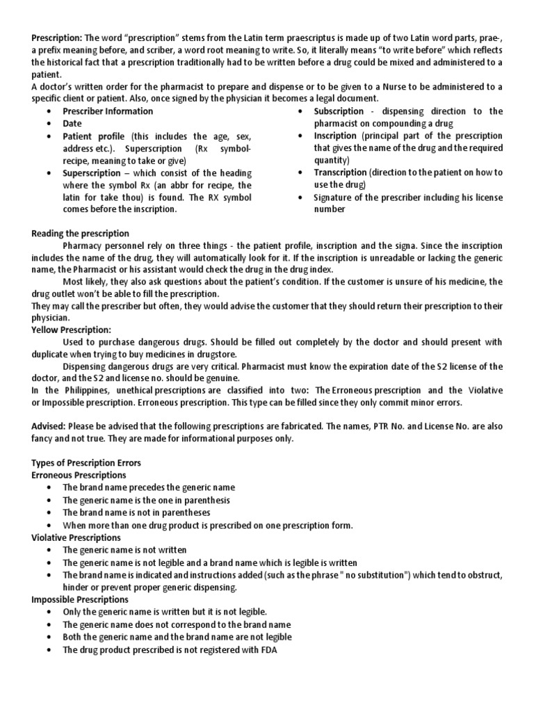 Prescription: The word “prescription” stems from the Latin term praescriptus is made up of two Latin word parts,